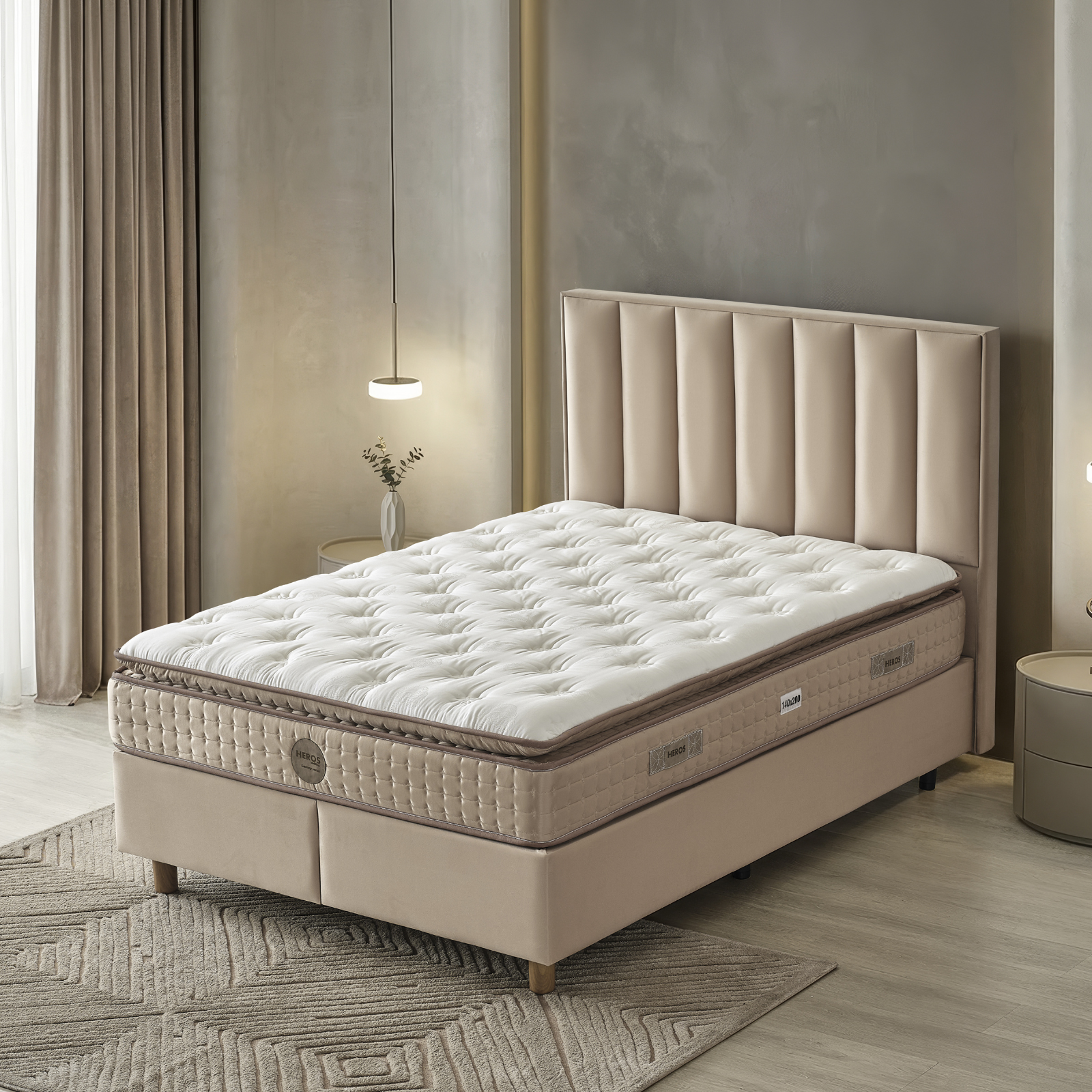 Dankzij de complementaire opbouw van boxspring, hoofdbord en matras brengt dit bed niet alleen